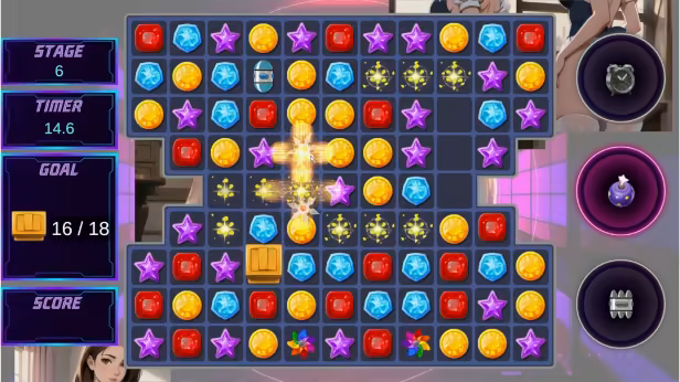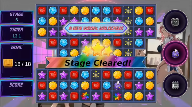 Unlike traditional match-3 games, Sexy Crush introduces a real-time system that adds an exciting layer of urgency and thrill. You must clear stages by meeting specific objectives within a strict time limit — no endless thinking allowed!