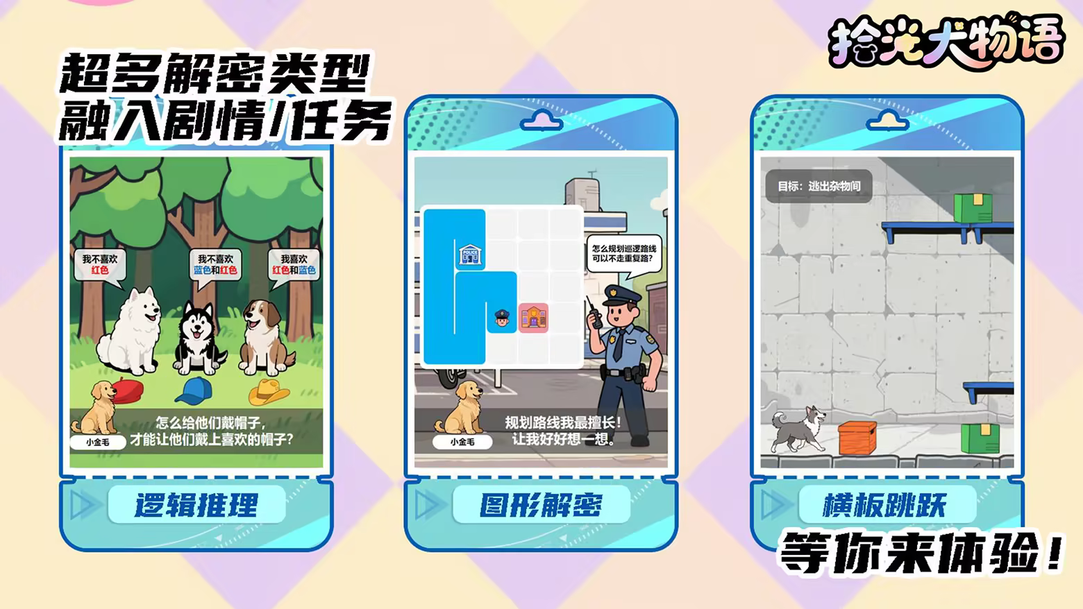 在小镇的大街小巷尽情探索,成为狗狗收藏家!