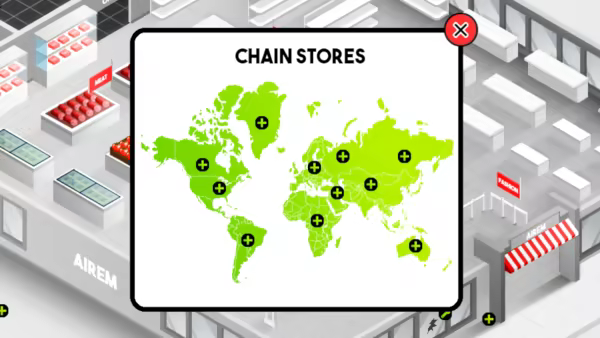 Shop Tycoon is a store simulator. Start with a small store, then build a huge store with parking lots, offices for employees, a huge fleet of cars.