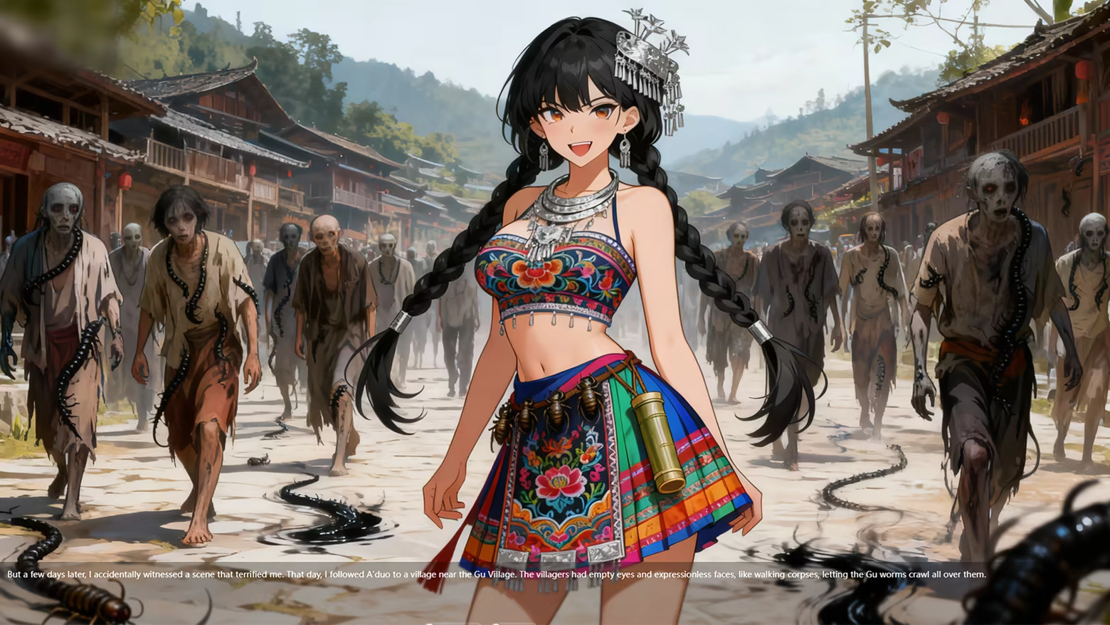 Aduo (Miao Gu Demon): When you are on the verge of death after accidentally eating a poisonous fruit, she saves your life with a golden silkworm Gu. A passionate night spent drinking rice wine and indulging in Gu poison in a stilted house, surrounded by Gu worms.