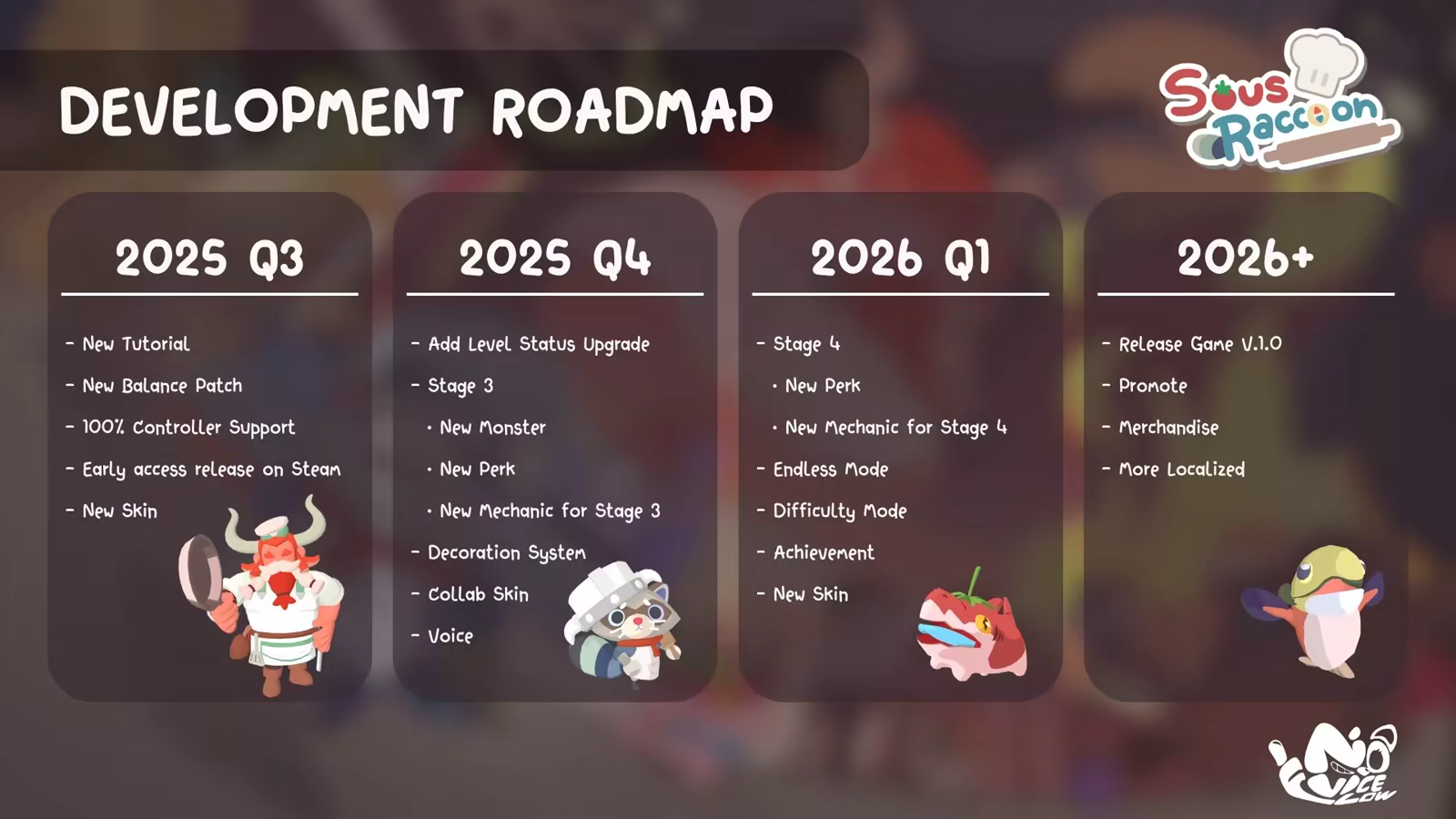 Sous Raccoon is an Action-Roguelike Defense game where you play as a raccoon sous chef assistant. You'll embark on a journey to open restaurants in various locations, with the head chef spending 7 days at each location before moving to the next.