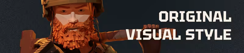 A down-to-earth war atmosphere: original stylistics and a grim color palette immerse you in an alternate Modern History setting. Beneath the low-poly aesthetic lies meticulous attention to detail: authentic, carefully recreated weapons and gear, vehicles, and camouflage. And no pink skins here—just gritty, worn-out uniforms!