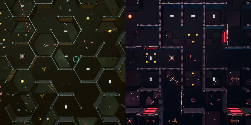 Dive into the endless world of Steinstern. Explore increasingly large procedural mazes and unlock the doors. Find and upgrade weapons and level-up your ship to stand a chance against the increasingly difficult enemies.