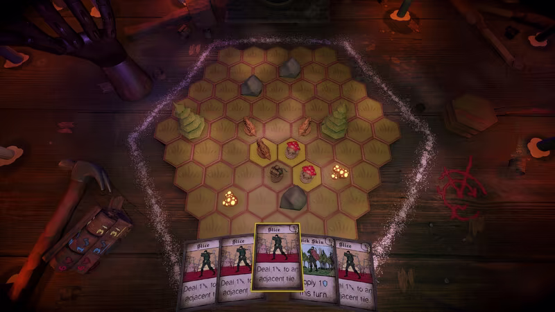 A deckbuilder at heart, The Grimwood Hex has a wide variety of cards to choose from. Each with their own synergies allowing for you to choose how you want to play. These are utilised in a unique, hex based, combat system where maneuverability and use of the environment are the difference between life and death.