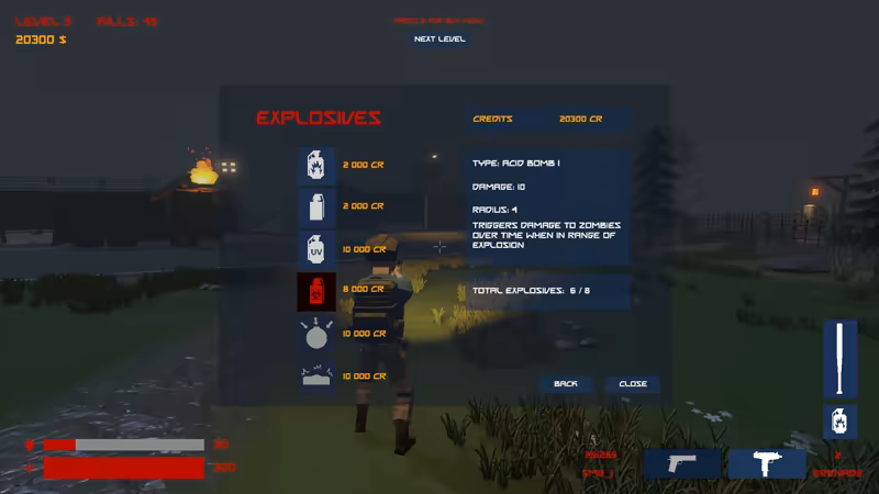 You will have time to buy weapons after each level has been completed. You have a wide range of firearms, grenades, melee weapons and upgrades to choose from.
