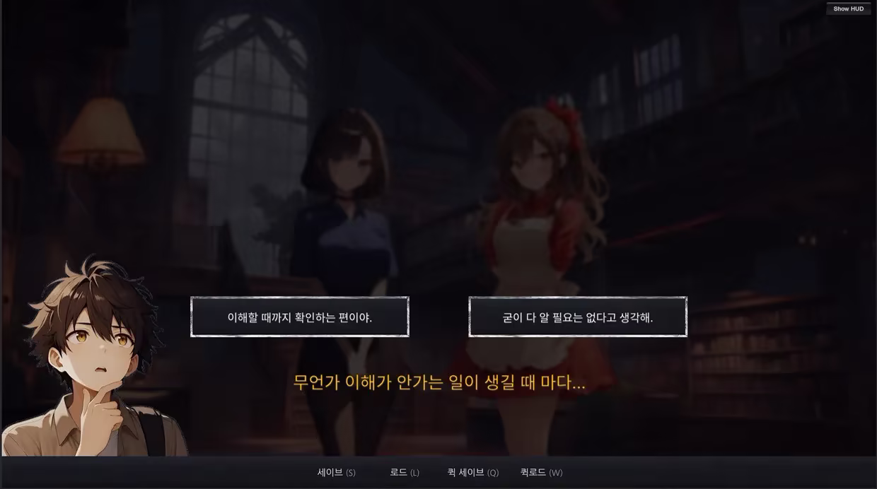 Explore locations, interact with the environment, obtain hints, and discover items.