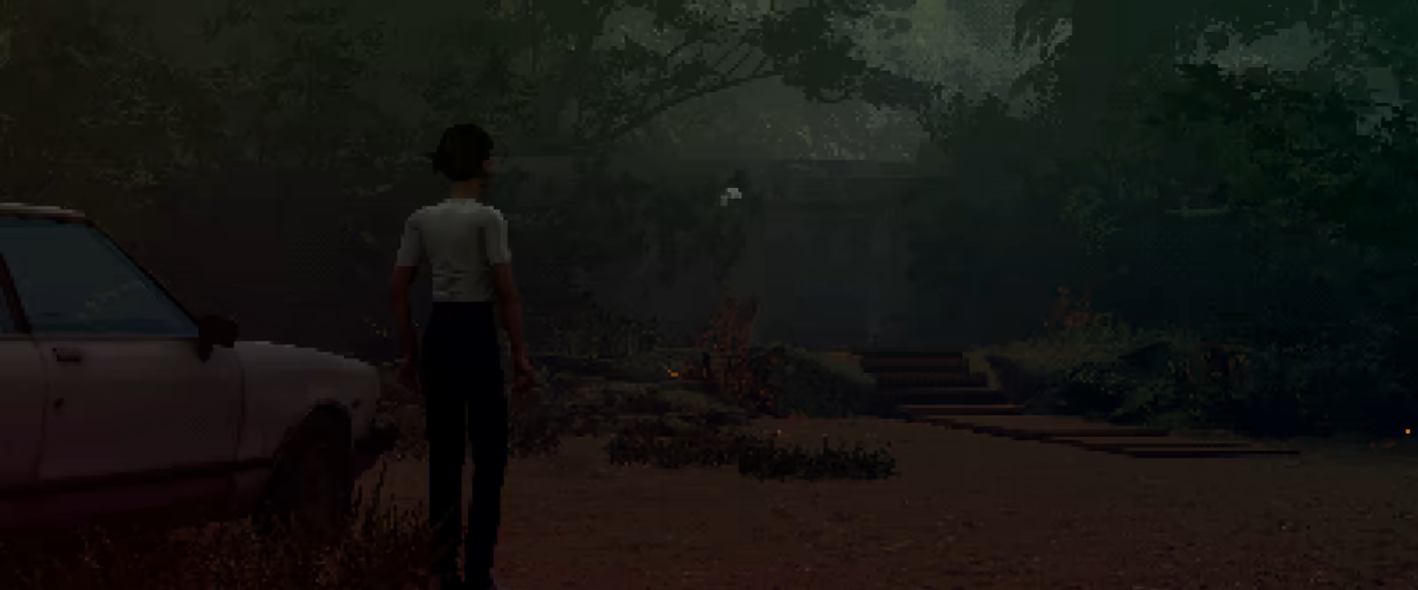 Atmospheric setting with a lo-fi pixelated aesthetic