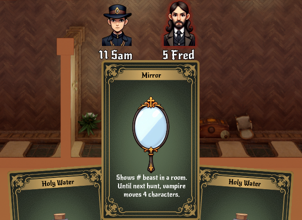 The detective can use a mirror on his hunting turn to reveal the number of beasts—not who!, vampires or werewolves, in the room. They will be aware they are under suspects and they will shift characters between rooms to cover their tracks.