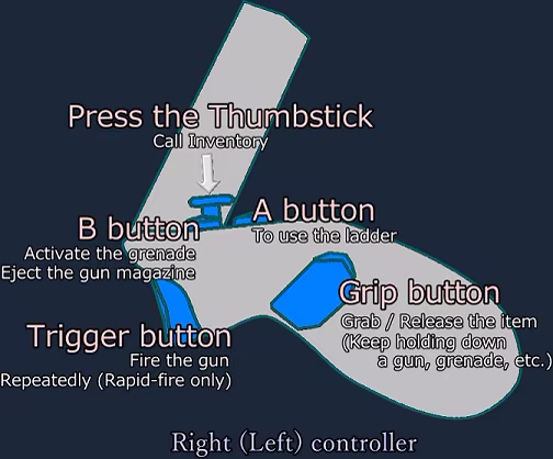 ・Fire the gun repeatedly (Rapid-fire only): Hold down the trigger button on the right controller