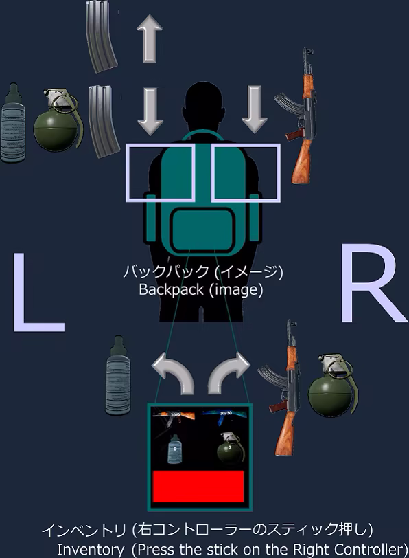 ・Items to take out of the backpack (Press the stick on the right controller to display the "Inventory" menu)