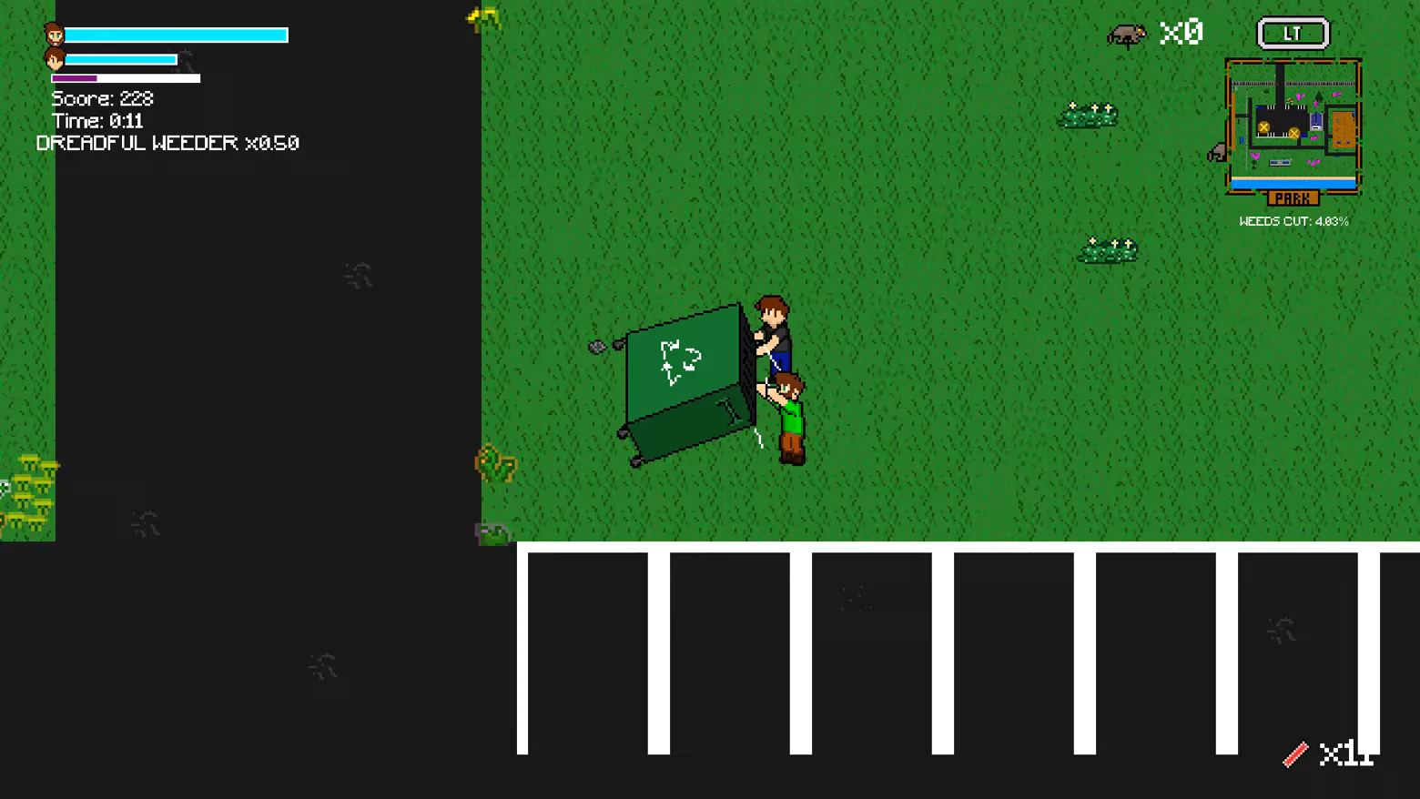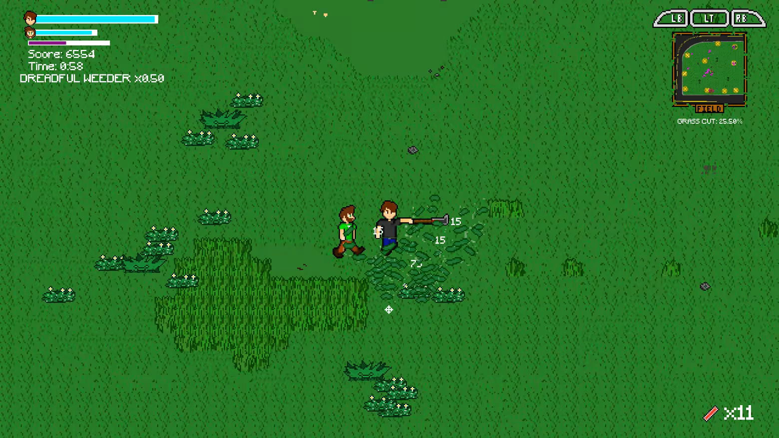 Have a little sibling, child, niece, nephew, or even your grandma that wants to play? You're in luck. Weed Wacker Warrior has local multiplayer. By plugging in 2 controllers and enabling the state of the art "Little Sibling Mode" you no longer have to give them an unplugged controller! A second player can join in as the following character and provide support to player one!