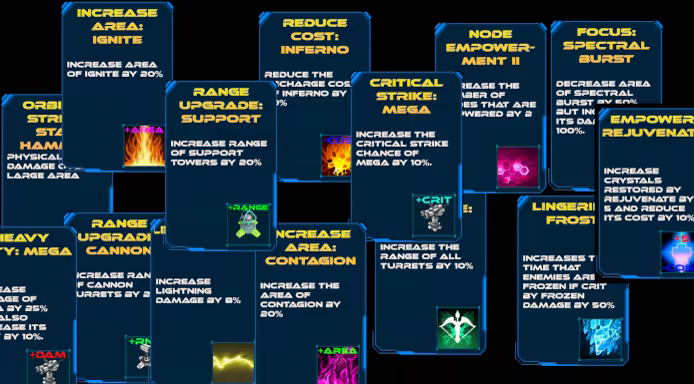 Your mission is to protect the Xenocrystals as you go through the alien worlds of the Vorrak. Use energy to teleport in your towers to defend the Xenocrystals. Use orbital abilities to destroy the aliens directly or support your own towers.