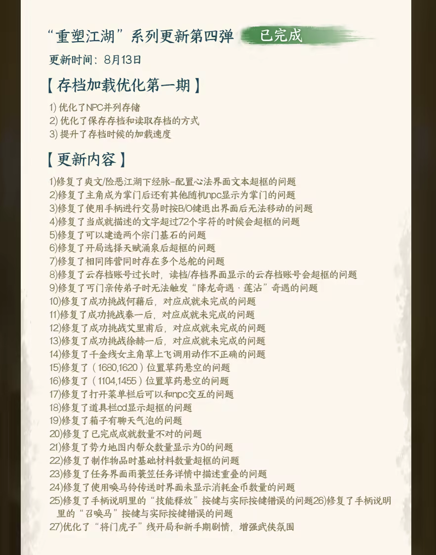已完成的版本更新: