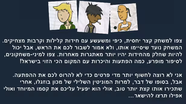 Please note: This game is entirely in Hebrew, and is intended for Hebrew speakers (or students of Hebrew). .![]()